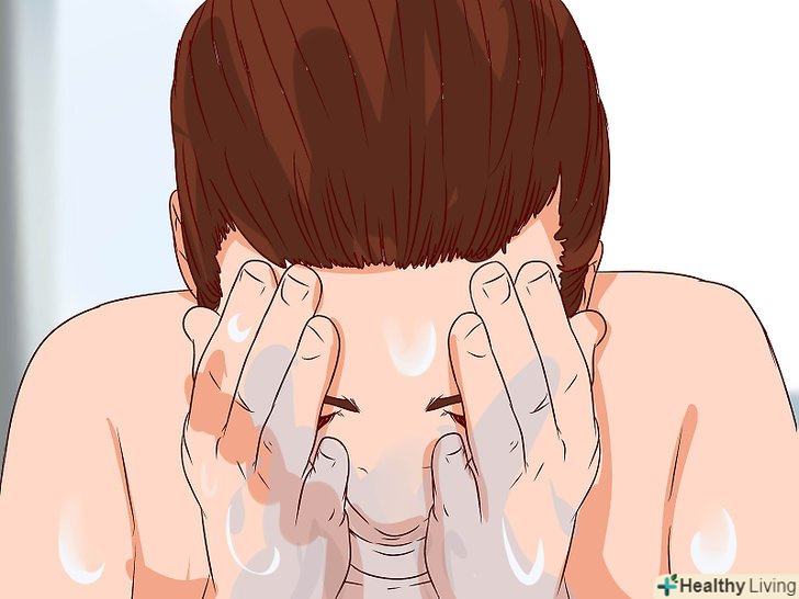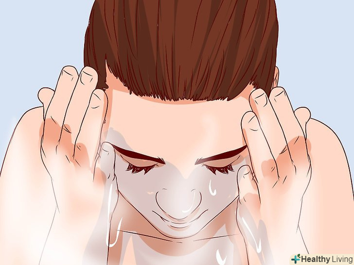 Помийте обличчя теплою водою.круговими рухами втирайте гель для вмивання в шкіру обличчя кінчиками пальців. Гаряча вода може нашкодити шкірі і висушити її, так що вмивайтеся приємною теплою водою.[2] після того, як ви очистите кожен сантиметр обличчя, а особливо ті місця, де часто з'являються прищі, ретельно сполосніть обличчя.