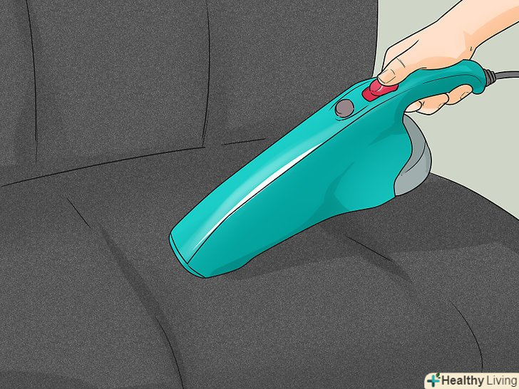 Частіше пилососьте в автомобілі.очищення автомобільних сидінь пилососом допоможе зберегти їх в чистоті. Прибирання сміття і бруду дозволить запобігти виникненню плям на оббивці. Прибирайте в автомобілі раз в один-два тижні, в залежності від кількості скопилася всередині бруду.[11]