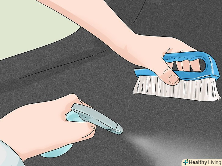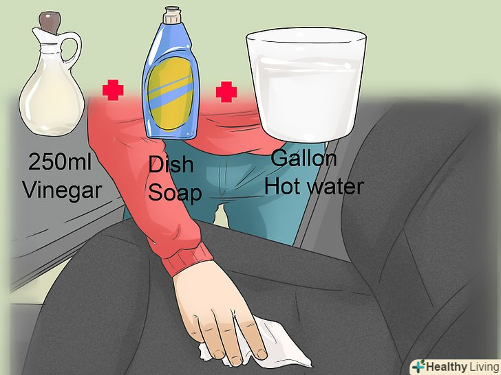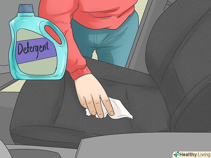 Використовуйте оцет.з білого дистильованого оцту можна виготовити Очищувач для тканини. Змішайте в 4 літрах гарячої води 250 мл оцту і кілька крапель засобу для миття посуду. Обробіть сидіння цим розчином і протріть брудну ділянку щіткою.[8]- Змийте розчин чистою водою. Витріть бруд рушником з мікрофібри.