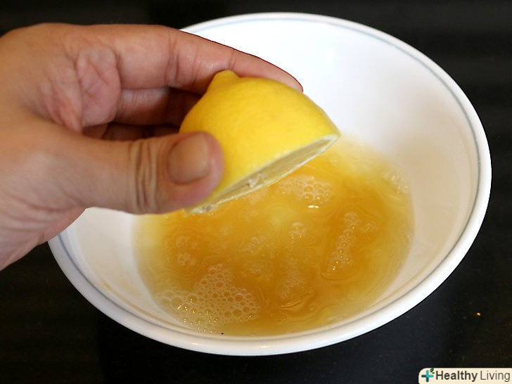 Додайте лимонний сік (бажано).лимонний сік не обов'язковий, але він допомагає позбутися від чорних крапок. Найкраще додати натуральний сік, який можна вичавити зі шматочка звичайного лимона, але покупної сік теж підійде. Додайте в миску з яєчним білком 1 столову ложку соку і перемішайте.[2]
