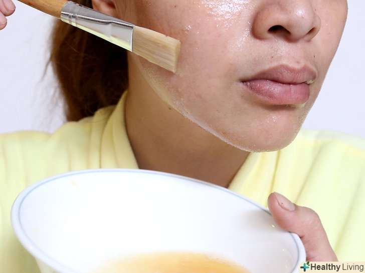 Додайте мед (бажано).цей натуральний продукт сприяє більш швидкому загоєнню шкіри, а також служить захисним бар'єром від інфекції. Збийте доданий в яєчний білок мед віночком або виделкою. Потім нанесіть маску на шкіру так само, як якщо б це був просто чистий яєчний білок.[3]