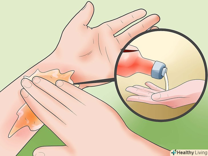 Нанесіть лікарський засіб тонким шаром.багато препаратів для лікування алергічних реакцій продаються без рецепта, і вони призначені спеціально для лікування висипу на шкірі. В аптеці ви знайдете безліч різних кремів, мазей і лосьйонів проти висипу.- Мазі більш маслянисті і вбираються довше. Вони ідеально підходять для дуже сухої шкіри.