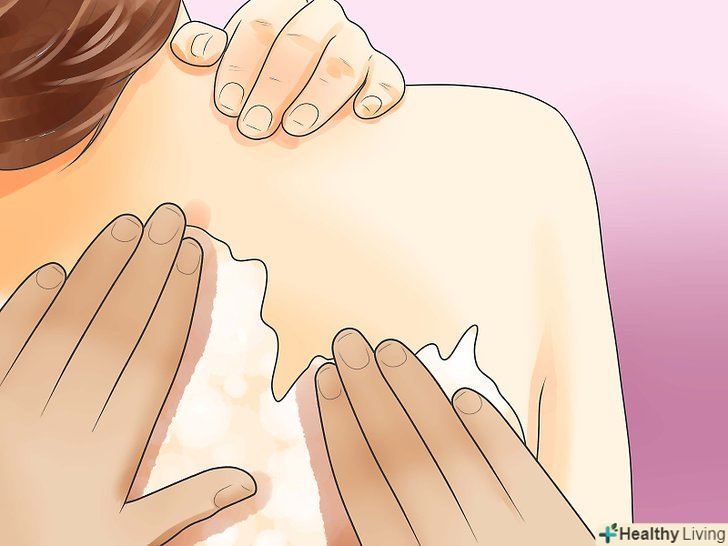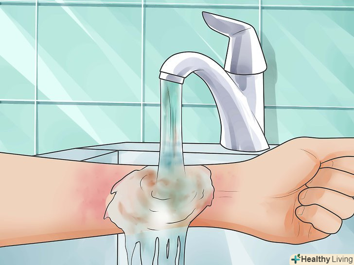Промийте уражену ділянку в теплій воді з гіпоалергенним милом.дуже важливо стежити за тим, щоб уражена область залишалася чистою і сухою. Вибирайте тільки гіпоалергенне мило з натуральних інгредієнтів. Мийте уражену область теплою чистою водою. Не тримайте уражену область у воді занадто довго, а тільки обережно промивайте під теплою водою і витирайте чистим рушником, щоб прибрати надлишки вологи.- Слідкуйте за тим, щоб шкіра залишалася сухою. Якщо у вас занадто чутлива шкіра, щоб витирати її рушником, просто обережно промокніть її і дайте висохнути на повітрі. Більшість видів висипу не є небезпечними, і швидко проходять з правильним доглядом.