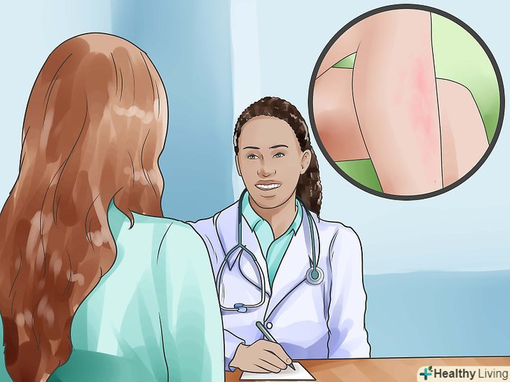 Зверніться до лікаря.запишіться на прийом до лікаря, якщо у вас з'явилася незвична висип, яку не виходить швидко вилікувати. Більшість видів висипу виглядають однаково, саме тому поставити діагноз буває нелегко, особливо самостійно. Якщо висип не проходить протягом двох тижнів навіть при місцевому лікуванні, то про це необхідно повідомити лікаря.- Висип на шкірі може бути викликана різними причинами-від аутоімунних розладів до простого стресу. Якщо висип болить, або її не вдається вилікувати безрецептурними препаратами протягом тижня, необхідно звернутися до лікаря.[5]