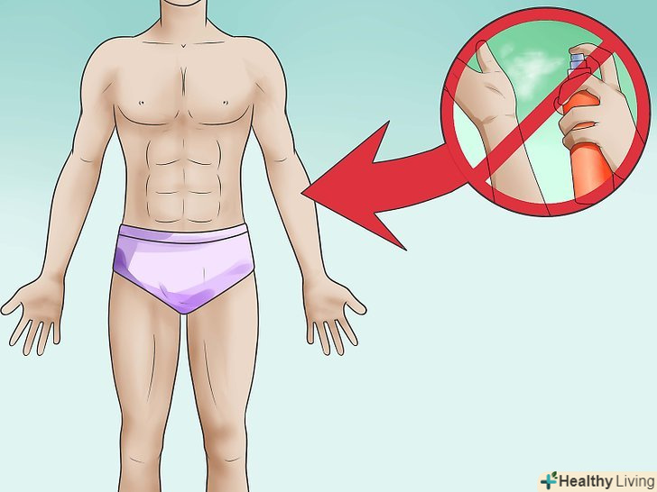 Не дратуйте уражену область.якщо ви підозрюєте алергію на парфумерні засоби, тальк для тіла, мило, гель для душу або інші засоби, то спробуйте використовувати інший засіб, бажано, гіпоалергенне. Якщо у вас роздратування на шкірі через тісного одягу або матеріалу, з якого зроблена одяг, то постарайтеся частіше переодягатися і стежте за тим, щоб шкіра залишалася сухою.- Якщо у дитини висип під підгузником, то дайте малюкові походити деякий час без підгузника. Частіше міняйте і наносите спеціальний крем під підгузник. Завдяки крему між шкірою і матеріалом підгузника буде водонепроникний шар.
