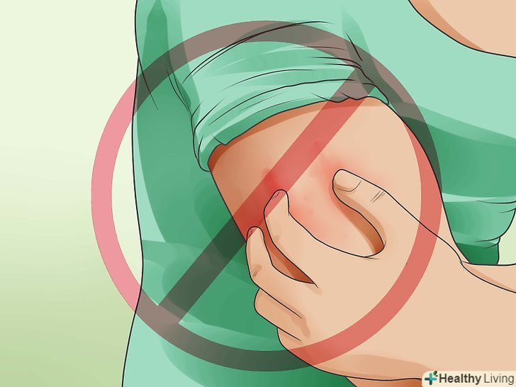 Не чешіть.висип часто свербить, але, зрозуміло, ви повинні постаратися не чіпати роздратоване місце. Якщо розчісувати висип, це може викликати інфекцію. Якщо ж все-таки ви дуже хочете почухати, то робіть це подушечками пальців — пам'ятайте, що розчісування може тільки погіршити свербіж. Постарайтеся не думати про свербіж і відволіктися на щось інше.- Дуже важливо носити вільний одяг з натуральних матеріалів, щоб шкіра дихала. Не закривайте висип, якщо тільки цього не порадив зробити лікар.