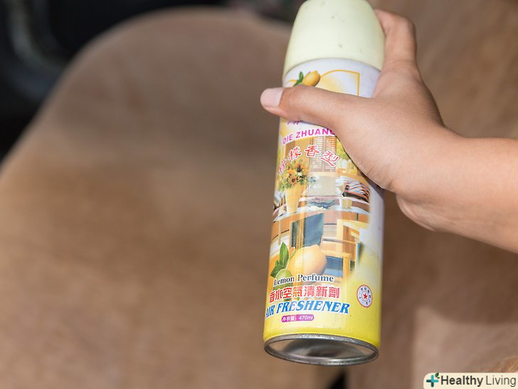 Розпиліть освіжувач повітря на ділянки з запахом.розпиліть освіжувач кілька разів і дайте йому просочитися вглиб ділянок з запахом цвілі. Це допоможе позбутися від запаху в салоні.- Не потрібно перенасичувати ділянку вологою. Зберіть зайвий освіжувач повітря серветкою.