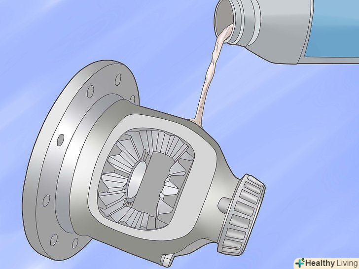 Залийте в диференціал відповідне масло. шукайте вказівки з обслуговування від виробника, інструкцію власника або етикетку на тарі з придатним для вашого автомобіля маслом для диференціала. Заливайте через отвір, з якого ви дістали заливну пробку, поки масло не почне витікати з нього.