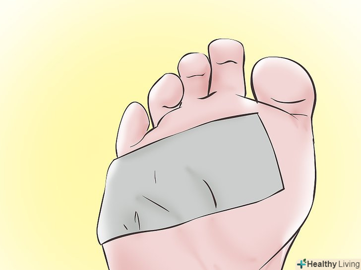 - Використовуйте чистий рушник, щоб висушити ногу, а потім скористайтеся пемзою або пилочкою, щоб зчистити мертву шкіру з поверхні бородавки. Залиште бородавку на ніч непокритою, а потім вранці приклейте свіжий шматок лейкопластиру.