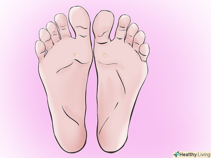 Бородавки на ступнях викликані дуже заразним вірусом ВПЛ. Вони найчастіше розташовуються на подушечках стоп, при ходьбі можуть бути болючими, а можуть і не заважати. Якщо ви подивитеся уважно, то зможете побачити кілька невеликих чорних крапок в центрі бородавки, які викликані кровотечею в результаті тиску при ходьбі і стоянні. Від бородавок може бути досить важко позбутися, але є кілька способів, які ви можете спробувати. Дивіться нижче Крок 1, щоб дізнатися більше.
