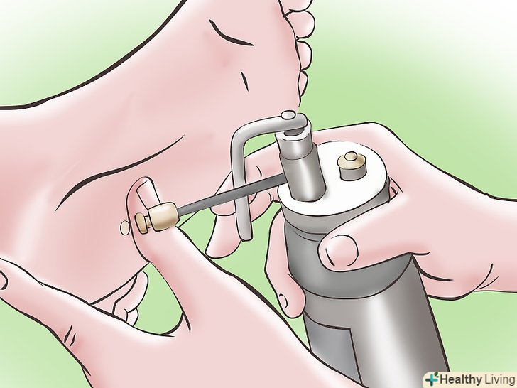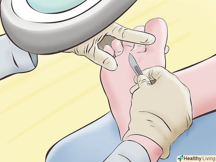 Зріжте бородавку.у деяких випадках, бородавки можуть бути зрізані або стерті ортопедом або майстром з педикюру.- Якщо навіть не вдасться повністю видалити бородавки, то це допоможе зменшити їх і зробить менш болючими.