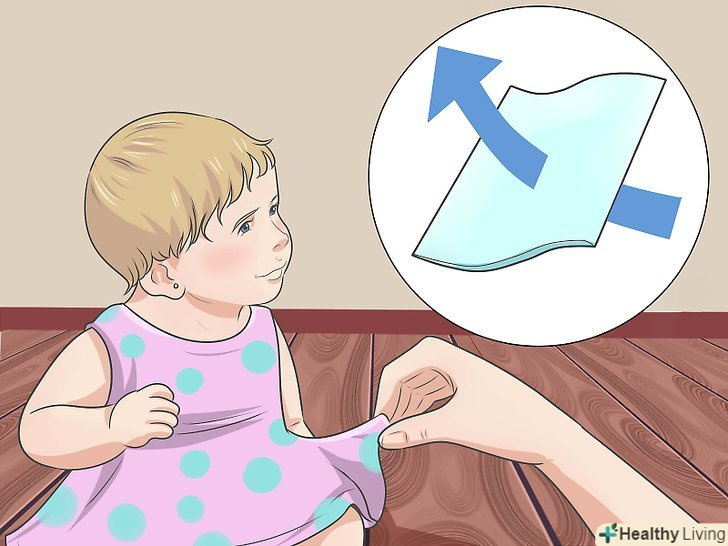 Одягайте немовлят як дорослих.найчастіше пітниця виникає у немовлят, яких турботливі батьки надмірно загортають в жарку погоду. У спекотну погоду дітей теж потрібно одягати у вільний, дихаючий одяг.- Якщо ручки або ніжки у малюка прохолодні, то це ще не означає, що йому холодно.[10]