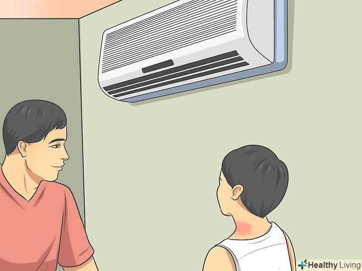 Перейдіть в прохолодне, захищене від світла місце.потрібно піти з сонця по можливості в прохолодне (близько 21 °C) і сухе місце. Якщо немає можливості сховатися в приміщенні, хоча б підіть з-під прямих сонячних променів в тінь.- У більшості випадків пітниця проходить після того, як тіло охолоджується.[3]