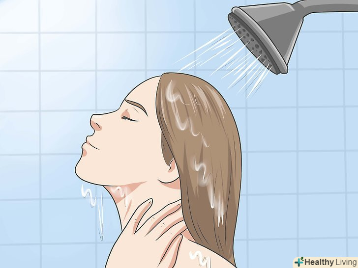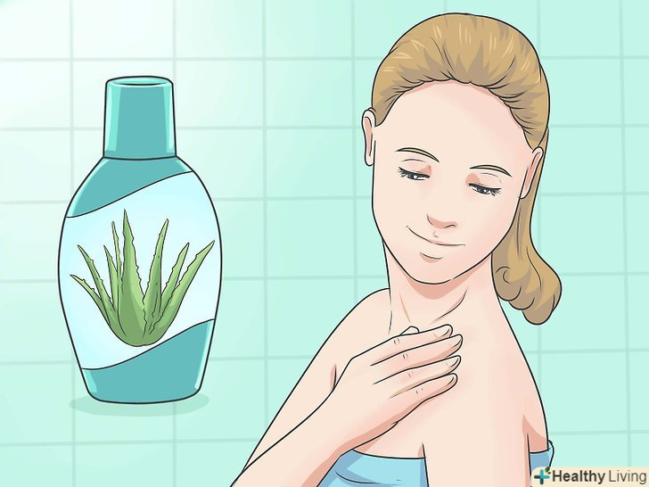 Щоб швидко знизити температуру тіла, прийміть прохолодний душ або ванну.вода не повинна бути холодною, лише злегка прохолодною, щоб надати розслабляючий ефект. Скористайтеся очищаючим засобом для чутливої шкіри або антибактеріальним милом, щоб дбайливо очистити ділянку шкіри з висипом, а потім промокніть його або дайте висохнути на повітрі.- Відлущуйте шкіру харчовою содою, щоб знизити запалення.додайте в склянку холодної води 1 столову ложку харчової соди і перемішайте, поки сода не розчиниться. Потім занурте в суміш ганчірочку, вичавіть її і прикладіть до ураженої ділянки шкіри на 10 хвилин. Після цього злегка потріть ганчірочкою цю ділянку, щоб дбайливо відлущити шкіру. Це відкриє пори і одночасно зніме запалення.[6]
