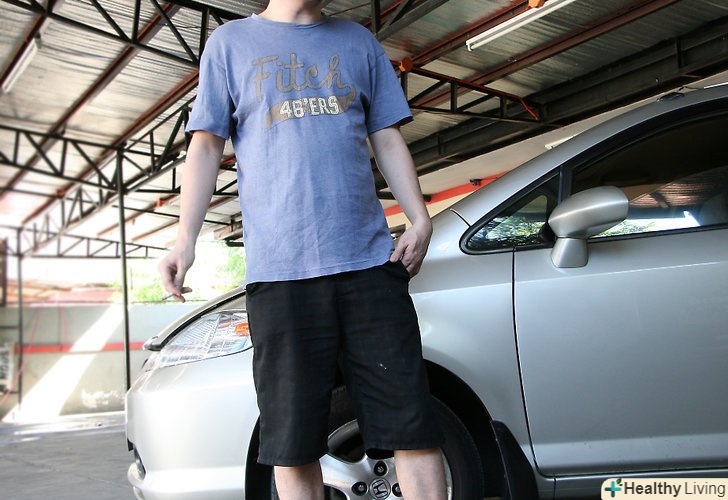 Одягайте скромний, повсякденний одяг.якщо дорога до роботи або навчального закладу займає багато часу, спробуйте одягати на час їзди за кермом шорти і футболку, а потім переодягатися у вбиральні або Роздягальні на роботі. Це дозволить вам залишатися сухим і свіжим весь день, що залишився.- Якщо є ймовірність, що протягом дня вам потрібно буде мати більш презентабельний вигляд, рекомендуємо вам возити з собою в машині чисту, свіжу одяг в ті дні, коли на вулиці занадто жарко і рух утруднено.