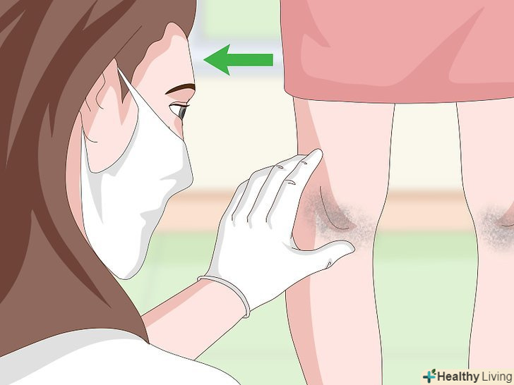 Сходіть до дерматолога, щоб він діагностував проблеми з пігментацією або захворювання шкіри.якщо ви перепробували кілька методів проти темних колін, але нічого не допомогло, запишіться на прийом до фахівця. На прийомі лікар огляне ваші коліна і діагностує ймовірну причину темних плям.[12]- Обов'язково розкажіть йому, якими методами ви намагалися позбутися від темних плям на колінах.