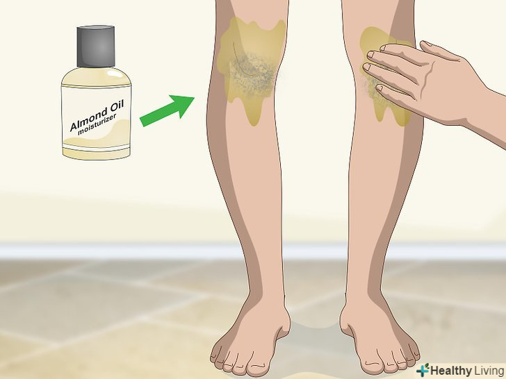 Втирайте в коліна мигдальне масло, якщо вам потрібно недороге зволожуючий засіб.щоночі наносите на коліна по 1 столовій ложці (15 мл) мигдалевого масла. Покрийте коліна маслом, а потім оберніть їх шматком тканини або рушником і залиште на ніч.[4]- Мигдальне масло є не тільки натуральним освітлюючим засобом, але і прекрасно зволожує шкіру. Таким чином, масло освітлить шкіру, зробивши її більш еластичною.