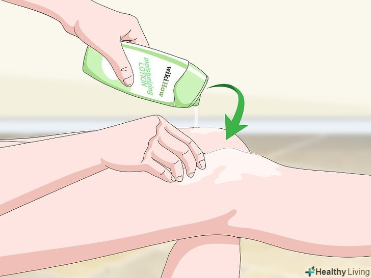 Щодня наносите на коліна лосьйон, щоб зменшити сухість.щоранку і вечір наносите на шкіру зволожуючий лосьйон, приділяючи особливу увагу колін. Шукайте лосьйони, в складі яких є вазелін, який утворює на шкірі захисний бар'єр для утримування вологи.[8]- Сухість є однією з найбільш поширених причин потемніння шкіри.