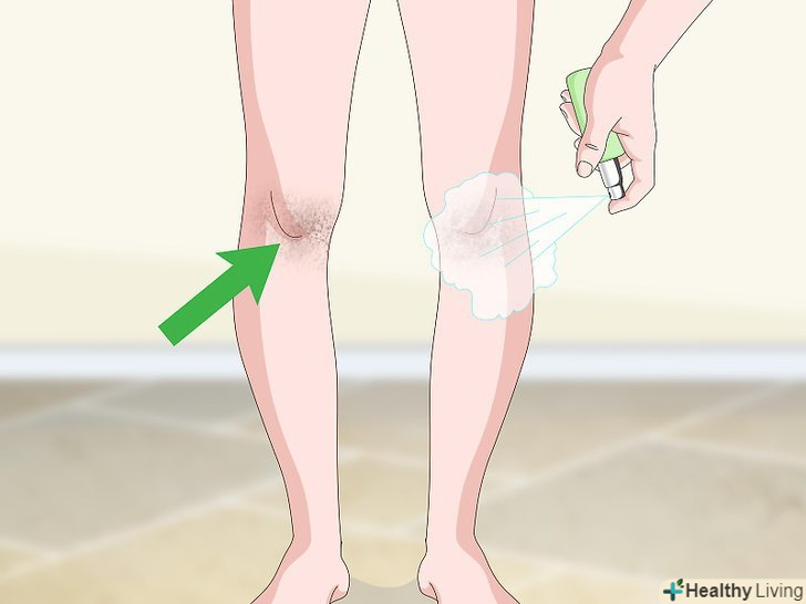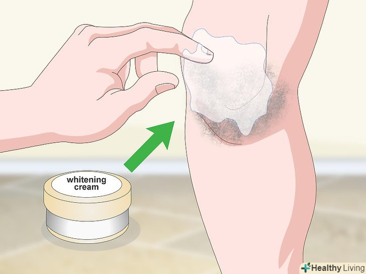 Нанесіть на коліна хімічний відбілюючий крем або гель.якщо у вас на колінах з'явилися темні плями, купіть відбілюючий крем з 2% гідрохіноном. Для досягнення найкращих результатів втирайте крем щодня протягом 4-6 тижнів.[10] майте на увазі, що хоча його кошти з гідрохіноном можна купити через Інтернет, офіційно вони в Росії не схвалені і не зареєстровані.- Якщо у вас чутлива шкіра, гідрохіон може викликати запалення. Якщо ви нанесли крем і відчули печіння або поколювання — негайно змийте його з колін холодною водою.