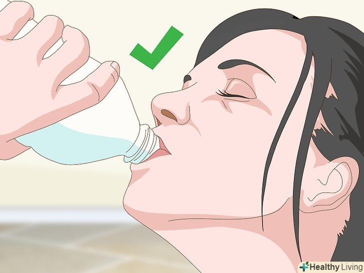Збільште споживання води, щоб поліпшити водний баланс.якщо ви вважаєте, що темні коліна викликані сухістю шкіри, пийте більше води! Як правило, намагайтеся випивати не менше 2 л води в день, якщо хочете, щоб шкіра була здоровою і світлою.[11]- Якщо збільшення споживання води не призвело до видимих результатів, подумайте про те, щоб крім цього почати користуватися натуральними або косметичними зволожуючими засобами.