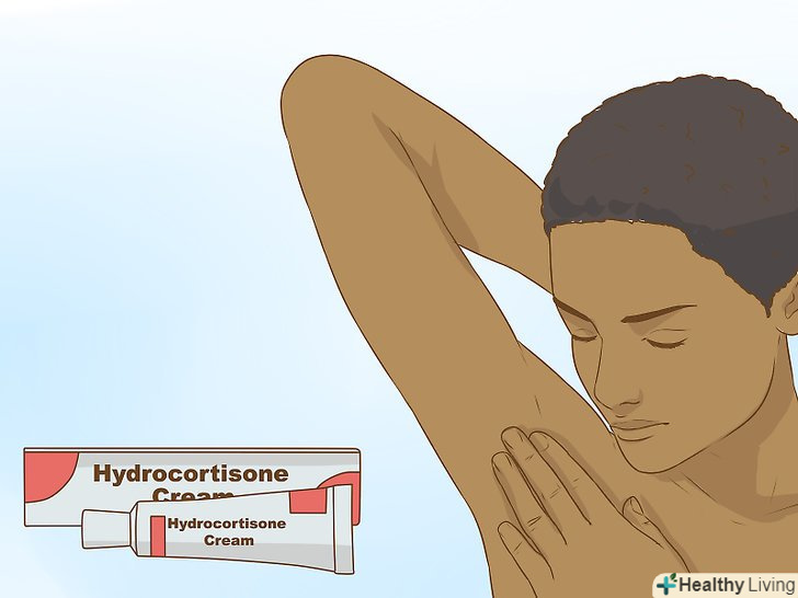 Нанесіть мазь гідрокортизону.якщо у вас з'являються прищики в області пахв, наносите гидрокортизоновую мазь безпосередньо на цю зону. Продовжуйте робити це протягом декількох днів, поки роздратування не спаде. Ця мазь допоможе зменшити свербіж і почервоніння, пов'язані з прищиками в області пахв.[12]