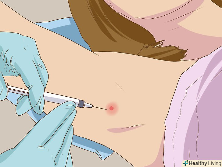 Видаліть кісту.у деяких випадках лікуючий лікар або дерматолог може порекомендувати видалення кісти. Як правило, це робиться, якщо кіста велика і супроводжується хворобливими симптомами.[15]- Кісту можна видалити хірургічним шляхом або за допомогою лазерної терапії (залежно від конкретного випадку).