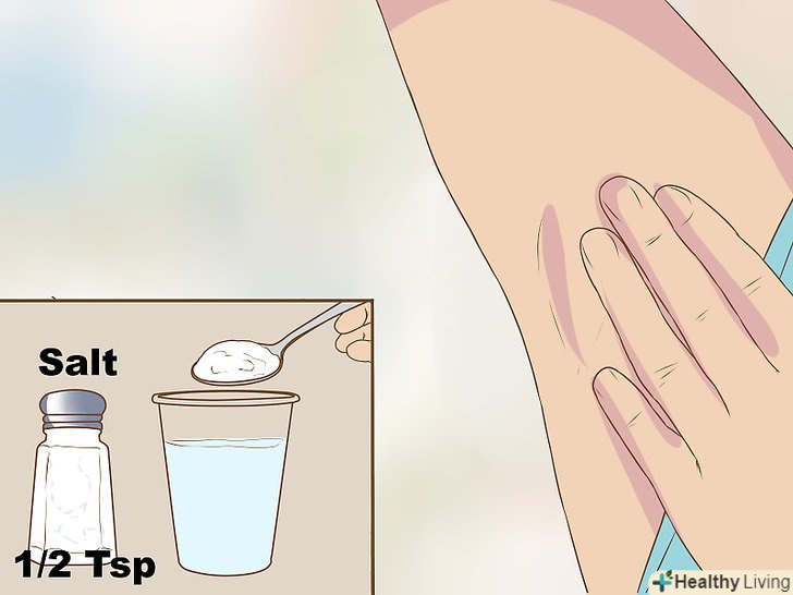 Перед голінням нанесіть теплу воду з сіллю.щоб зменшити тертя від гоління, перед початком процесу нанесіть на область пахв розчин з солі і води. Змішайте ½ чайної ложки солі зі склянкою теплої води. Занурте ватний диск в отриманий розчин і нанесіть його на область пахв. Залиште на 10 хвилин.[4]- Це пом'якшить волосся, скоротивши ймовірність роздратування від гоління або виникнення прищів.