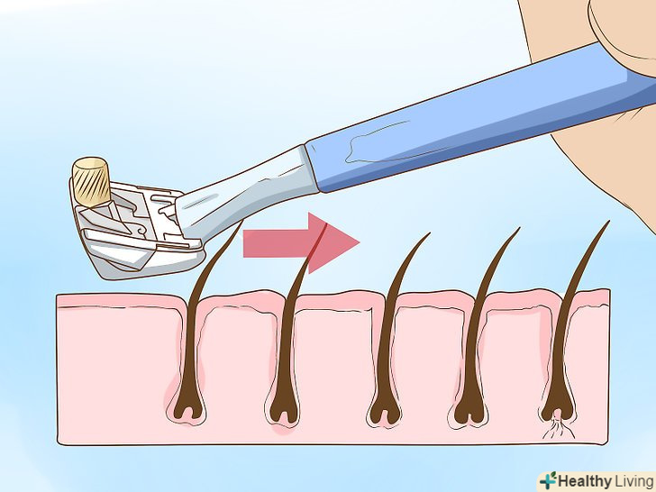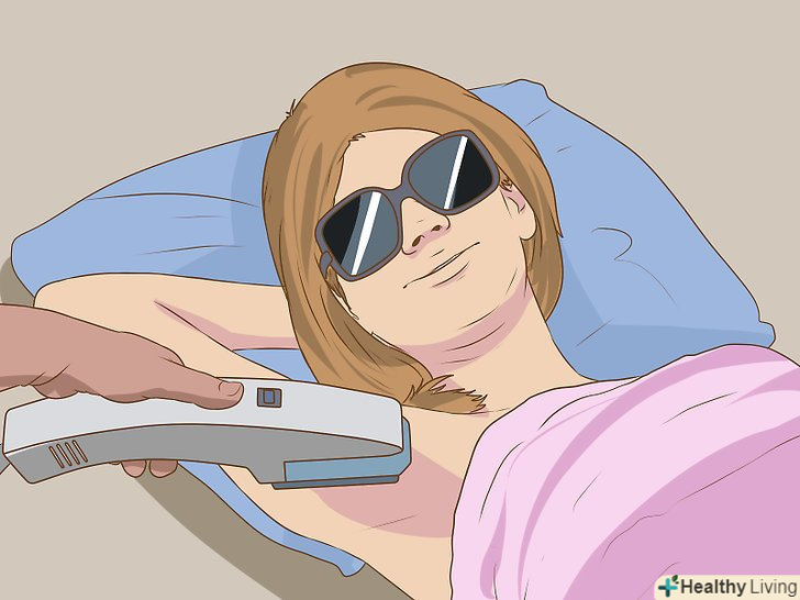 Спробуйте лазерну епіляцію.якщо ви виявите, що прищики в області пахв з'являються в результаті гоління, можете спробувати кілька альтернативних методів видалення цього волосся. Наприклад, можна позбутися від них за допомогою лазерної терапії. Лазерна епіляція допоможе позбутися від будь-яких подразнень на шкірі і врослого волосся, які можуть виникнути в результаті частого гоління, проте цей процес займає багато часу і може коштувати досить дорого. [8]- Процедура триває приблизно 10 хвилин, і Вам буде потрібно більше 10 сеансів, щоб позбутися від волосся назавжди.