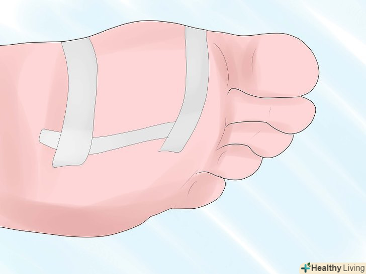 - Накладаючи пов'язку і пластир, якомога сильніше притисніть їх до стопи, щоб вони щільно прилягали, повторюючи форму стопи.