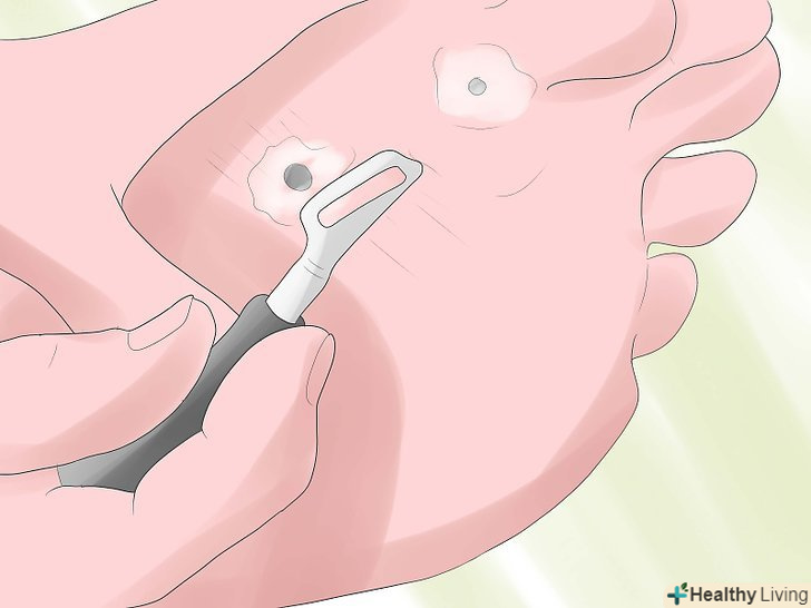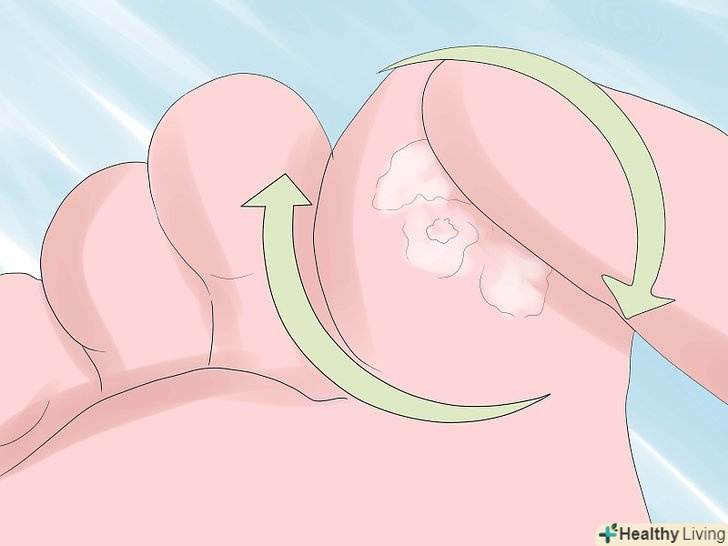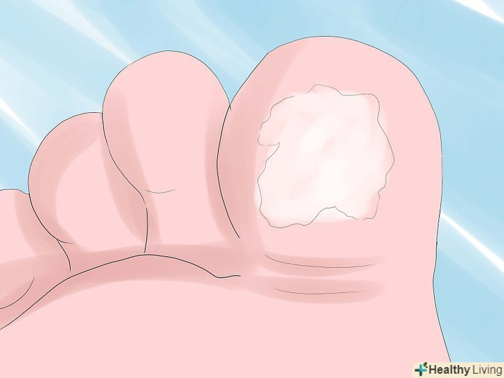 - При лікуванні, зсередини назовні буде утворюватися, щось типу "виразки", тому не наносите ніякі мазі, сильні чистячі засоби або ліки на рану, щоб не пошкодити відкриті тканини. Просто мийте її дуже слабким мильним розчином, сушіть ногу і носіть чисті шкарпетки. Після цієї операції не повинно бути болю або інфекції: якщо вони є, зверніться до лікаря!