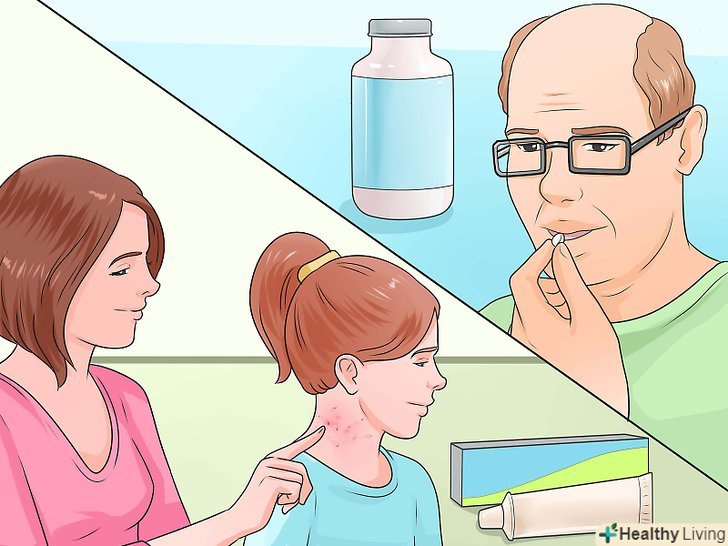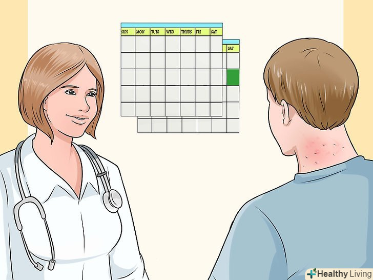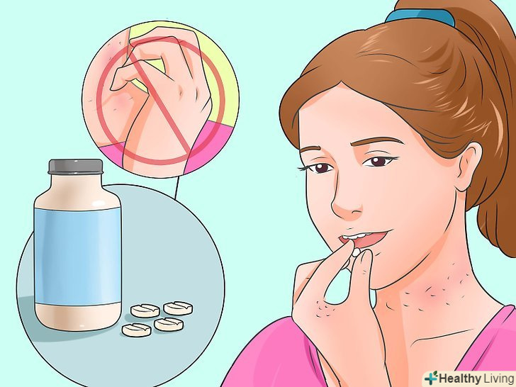 Лікуйте свербіж самостійно.якщо у вас сильний свербіж, то поки лікар не зробить вам призначення і не випише рецепт, ви можете почати лікувати його самостійно. Холодна вода або рідина від сонячних опіків допоможе зменшити свербіж.[7] також ви можете скористатися оральними антигістамінними препаратами, такими як: гідроксизин гідрохлорид (Атаракс) і Дифенгідрамін гідрохлорид (Бенадрил).- При дуже сильному свербінні лікар може порекомендувати короткий курс топічних або оральних стероїдів.[8]