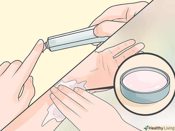 - Кінчиком пальця ніжно розітріть суміш круговими рухами (3-5 разів за годинниковою стрілкою і стільки ж проти). Промийте ділянку теплою водою,а потім промокніть його насухо рухами. Не забудьте також вимити руки і викинути використаний рушник в прання, щоб знизити ризик зараження.