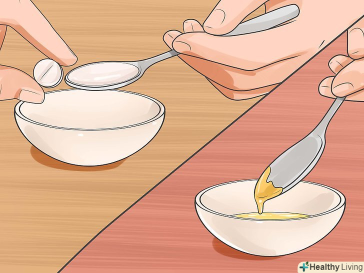 Приготуйте суміш з содою, солі і оливкової олії.пілінг ділянки з врослим волосом дозволить послабити і видалити волосся. З таких натуральних компонентів, як харчова сода і оливкова олія, можна приготувати пасту, яка дозволить уникнути інфекції і пом'якшить шкіру. Пасту слід наносити дуже обережно.- Змішайте разом по 1/2 чайної ложки соди, солі або цукру і додайте в суміш 1-2 столові ложки оливкової олії. Оливкова олія має антибактеріальні властивості і допоможе запобігти зараженню врослого волосся.