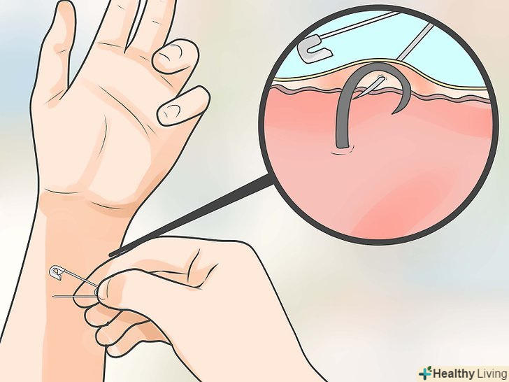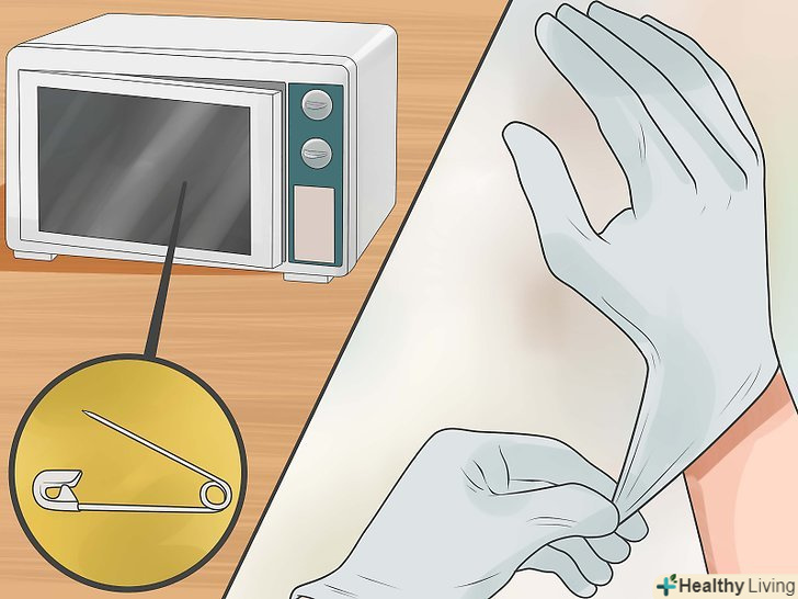 Простерилизуйте голку .хоча видавлювання врослого волосся і проколювання шкіри навколо нього може привести до інфекції, врослий волосся можна витягнути за допомогою стерильної голки.[2] Візьміть шпильку або швейну голку. Голку можна легко продезінфікувати, зануривши її в спирт.- Одягніть медичні рукавички, якщо вони у вас є, щоб не забруднити голку.