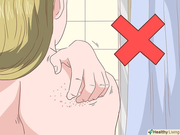 Не чешитесь.незважаючи на те, що це легше сказати, ніж зробити, максимально можливо уникайте розчісування шкіри. Розчісування може привести до подальшого подразнення шкіри, так як при цьому виробляються такі речовини як гістамін та інші цитокіни, які посилюють свербіж і призводять до його поширення. Крім того, сама дія розчісування змушує мозок випускати в кров хімічні речовини, що підсилюють свербіж. Крім того. на пошкоджену розчісуванням шкіру може потрапити інфекція, що тільки призведе до ще більшого її подразнення. Нарешті, якщо розчісувати шкіру занадто часто, її структура зміниться і на ній утворюються шрами, до того ж можуть змінитися її товщина (ліхенізація) і колір (гіперпігментація).[35][36]- Якщо у вас починає свербіти будь-яку ділянку шкіри, скористайтеся одним з швидких методів боротьби з сверблячкою, щоб» точково " обробити шкіру.
