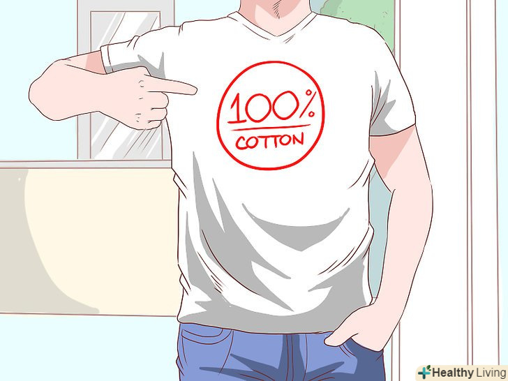 Носіть просторий одяг з натуральних тканин.наприклад, спробуйте носити одяг зі стовідсоткового бавовни, особливо це стосується нижньої білизни. Бавовна гіпоалергенна і є натуральною тканиною, що не містить штучних добавок, тому він знижує ймовірність появи небажаних шкірних реакцій і роздратування.[38]- Бавовна і льон також дозволяють шкірі дихати, даючи поту вільно випаровуватися в повітря. В якості додаткової вигоди, бавовна легше прати, сушити і обслуговувати, ніж багато інших тканин.