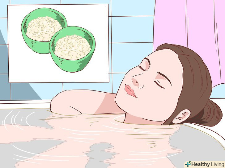 Прийміть ванну з вівсяними пластівцями або приготуйте вівсяну пасту.у вівсяних пластівцях є антиоксиданти, які допомагають заспокоїти шкіру і зупинити роздратування. Рекомендується використовувати колоїдні вівсяні пластівці, але в тих випадках, коли вони недоступні, можна також брати цілісний овес або цільну вівсяну муку. Для подрібнення вівса і пластівців можна скористатися кавомолкою. Найбільша кількість діючих речовин (амінів антранілової кислоти) спостерігається в необробленому вівсі.[14]- Додайте 2 склянки сирих вівсяних пластівців або вівсяної муки в ванну з водою. Пам'ятайте про те, що вода повинна бути прохолодною або ледь теплою, але не гарячою, так як це може нашкодити вашій шкірі. Щодня отмокайте у ванній по цілій годині, поки свербіж не припиниться.