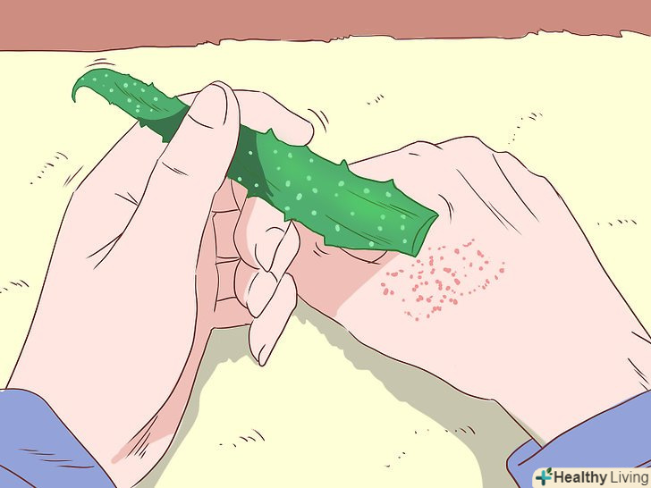 Скористайтеся алое.алое вера має протигрибкові, антибактеріальні та протизапальні властивості. Він також дуже багатий вітаміном E, який корисний при лікуванні опіків і допомагає знизити запалення і свербіж. [15]- Ідеально використовувати свіжий сік алое! Якщо у вас вдома росте алое, візьміть його лист, розріжте навпіл і потім нанесіть гелеобразное вміст листа на свербляче місце. Дайте соку вбратися в шкіру і заспокоїти її. В іншому випадку можна придбати гель алое вера в аптеці. Шукайте тільки стовідсотково натуральний гель Алое вера.