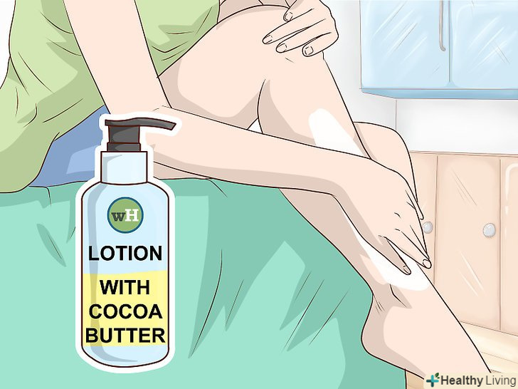 Наносите масло какао 2 або 3 рази на день на уражену область. Почніть лікування, як тільки з'являться розтяжки. Спробуйте знайти максимально чисте мало без хімікатів.