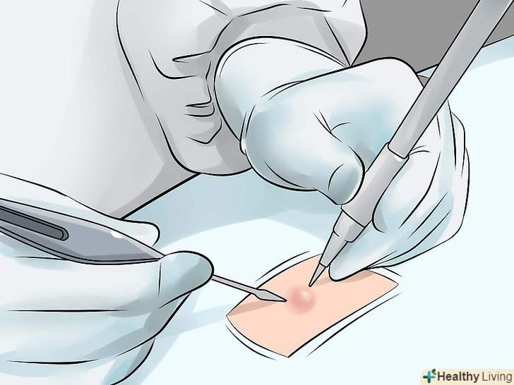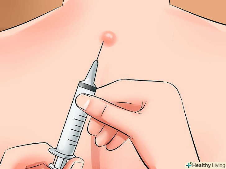 Забезпечте витікання гною.залежно від розміру і положення гнійника, ваш дерматолог може порекомендувати катетер або видалення за допомогою шприца.[3]- Під час процедури лікар, як правило, знеболює області до введення голки безпосередньо в гнійник. Потім видаляє гній і рідина за допомогою шприца, в результаті чого гнійник зменшується.