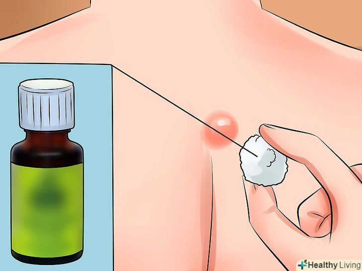 Змастіть гнійник маслом чайного дерева.замочіть стерильний ватний тампон в маслі чайного дерева і накладіть безпосередньо на гнійник. Повторюйте дію два-три рази на день до тих пір, поки гнійник не зникне.[2]- Масло чайного дерева має протизапальну і антибактеріальну властивості, які допоможуть вилікувати гнійник.