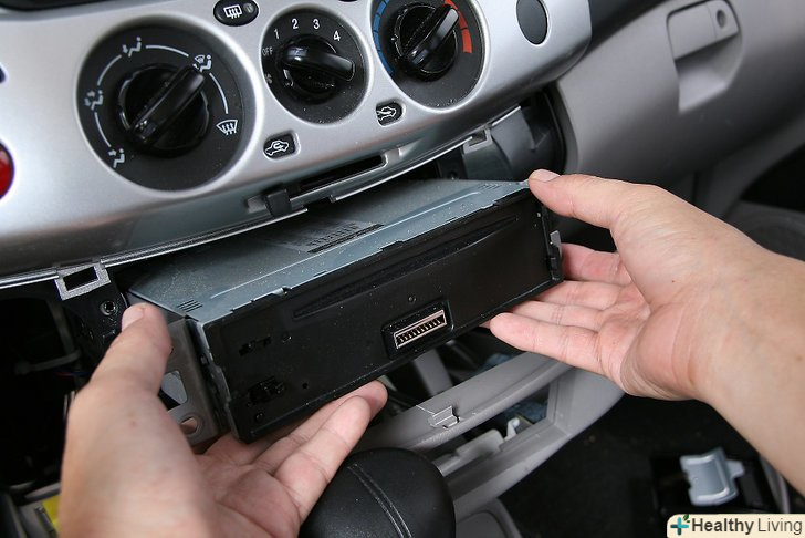 Встановіть магнітолу.встановіть її на місце заводської магнітоли і закріпіть за допомогою гвинтів від старої магнітоли. Переконайтеся, що підключили всі дроти і антену до магнітоли, встановіть всі зняті деталі панелі на місце. Панель повинна виглядати абсолютно так само, як до початку робіт, за винятком нової магнітоли і рамки.