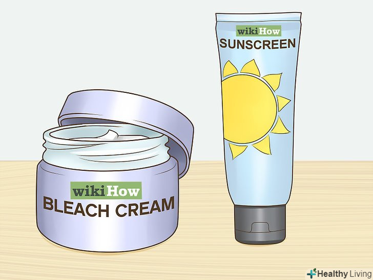 Користуйтеся освітлюючими і сонцезахисними засобами, щоб згладити відмінності в кольорі шкірі.креми не допоможуть зменшити шрами, проте за допомогою осветляющего крему можна освітлити шкіру, яка потемніла через рубцювання, завдяки чому шрами стануть менш помітними. Використовуйте сонцезахисний засіб з SPF-фактором не менше 30, оскільки здорова і зарубцьована шкіра загоряють по-різному. Шрами здаються менш помітними, коли вони зливаються з кольором навколишнього їх шкіри.[17]