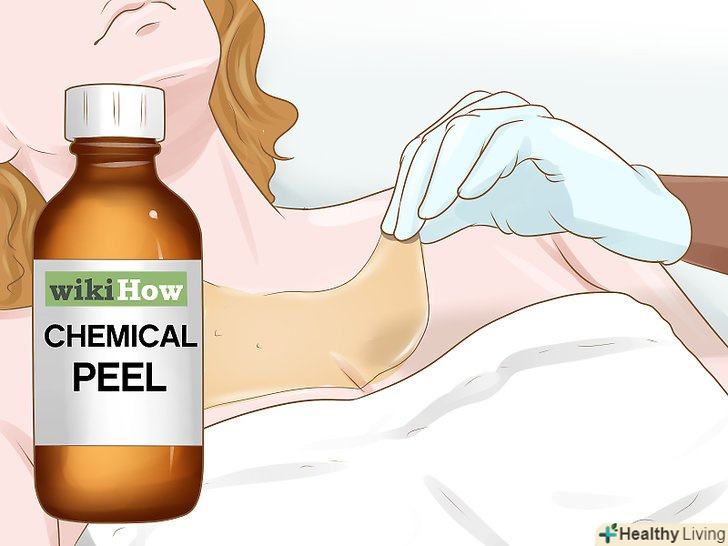 Спробуйте зробити хімічний пілінг.лікар нанесе на шкіру сильний розчин кислоти, який спалить верхній шар шкіри і зменшить Виступаючий або запалий шрам.[3] найкраще пілінг справляється з лікуванням шрамів на обличчі і руках, а не на тілі, проте глибокий пілінг ефективний при лікуванні невеликих запалих шрамів.[4] перед процедурою лікар оцінить стан вашої шкіри. Після процедури шкіра може хворіти до 3 тижнів (чим глибше пілінг, тим довше буде зберігатися чутливість).- Хімічний пілінг тимчасово зробить шкіру більш чутливою до світла, тому не забувайте захищати шкіру від сонця.