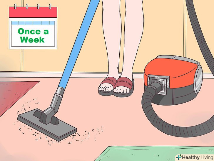 Пилососьте і витирайте пил хоча б раз на тиждень.якщо ви виявили, що пилок, цвіль, пил або шерсть тварин призводять до спалахів екземи, не забувайте хоча б раз на тиждень пилососити і витирати пил в будинку. Робіть це частіше, якщо у вас є домашні тварини. Не забувайте прати підстилку вихованця. [7]- Спробуйте включити очищувач повітря та зволожувач повітря. Ці пристрої очистять і зволожать повітря, і тим самим полегшать свербіж.