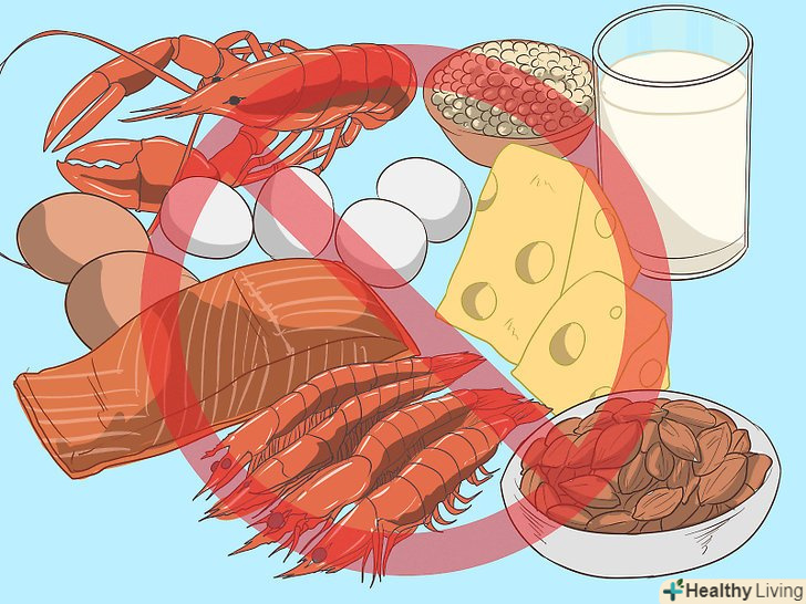 Контролюйте харчові алергії.хоча дослідження ще не закінчені, деякі дані говорять про те, що важкі випадки екземи можуть бути викликані і загострені харчовими алергіями. Харчові алергії частіше викликають екзему і призводять до її поширення у дітей, ніж у дорослих. Проконсультуйтеся з лікарем, щоб встановити наявність алергічної реакції на ті чи інші продукти. Можливо, Вам варто прибрати зі свого харчування один з наступних продуктів:[10]- Молочні продукти;