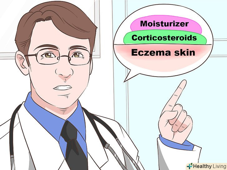 Використовуйте кортикостероїди місцевої дії.лікар огляне вашу шкіру для визначення ступеня тяжкості екземи. Після цього він може виписати вам рецепт на мазь, крем, лосьйон або спрей. При слабкій екземі купите безрецептурний кортикостероїд, наприклад, гідрокортизон. Нанесіть кортикостероїд на уражені ділянки шкіри, після чого нанесіть зволожуючий засіб, оскільки кортикостероїди можуть висушити шкіру. [11]- Використовуйте кортикостероїди відповідно до вказівок лікаря. У більшості випадків їх необхідно наносити один раз в день.