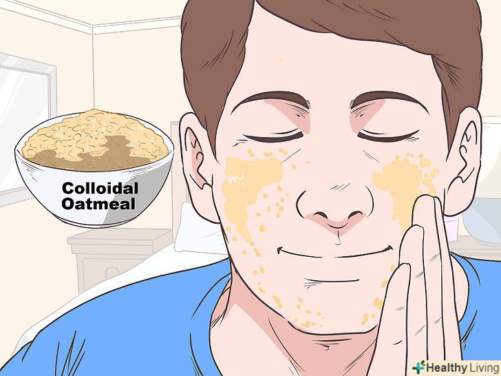 Використовуйте колоїдну вівсянку.колоїдна вівсянка виготовлена з вівсяних пластівців дрібного помелу, щоб вони могли розчинитися або суспендувати у воді або лосьйоні. Дослідження показали, що колоїдна вівсянка має антиоксидантні та протизапальні властивості, які полегшать свербіж. Нанесіть насухо лосьйон, в складі якого є колоїдна вівсянка. Або додайте висушену колоїдну вівсянку в теплу ванну.[3]- Щоб пом'якшити шкіру, у ванну також можна також додати солі для ванн без запаху, харчову соду або оцет.
