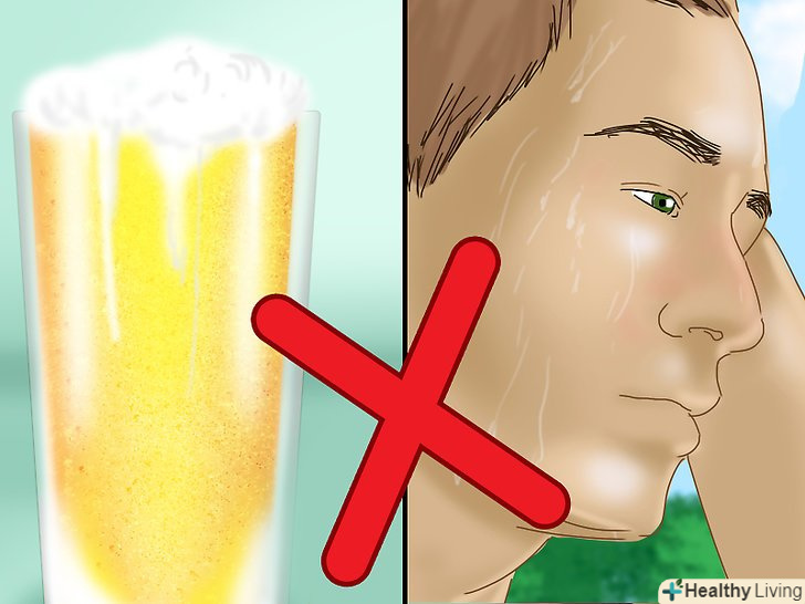 Уникайте контактів з подразниками.деякі фактори та харчові продукти можуть призвести до спалаху розацеа. Наприклад, гаряча їжа, до якої відносяться супи і напої, за рахунок температури або гостроти може викликати запалення. Тепло в різних формах може викликати спалахи хвороби, в тому числі це стосується прийняття гарячих ванн, фізичних вправ і високої навколишньої температури. Стрес також може призвести до розацеа.[21]- Також слід уникати алкоголю, так як він викликає роздратування.[22]