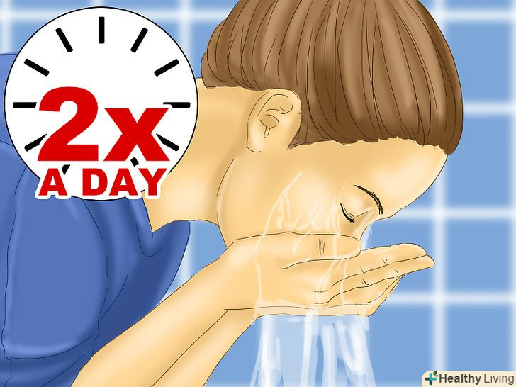 Вмивайтеся двічі на день.ця процедура видалить будь-які подразники з вашого обличчя, в тому числі макіяж, бруд, бактерії і мікроорганізми, а також допоможе вашій шкірі відновитися. Виберіть делікатний засіб для вмивання, яке підходить вашому типу шкіри, незалежно від того, суха вона, жирна або комбінована. На більшості засобів вказано тип шкіри, для якого вони розроблені.[23]- Просушивши шкіру, почекайте 30 хвилин перед нанесенням макіяжу або лікарських засобів. При одночасному застосуванні обох засобів необхідно спочатку використовувати ліки і почекати 10 хвилин, перш ніж приступити до нанесення макіяжу, сонцезахисного або зволожуючого крему.[24]